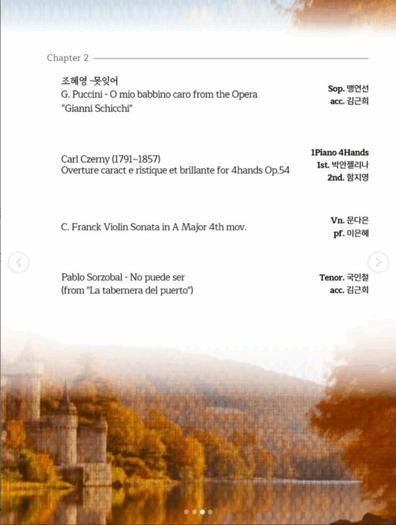 演奏会情報を一覧にして掲載しています。詳しくは各チラシをご覧ください。