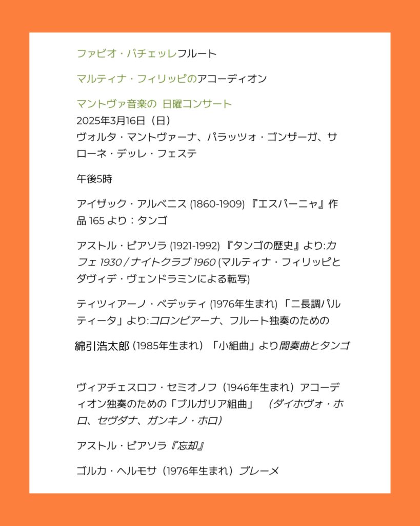 三月 十六日(イタリア・マントヴァ)『小組曲』(フルート・アコーディオン)